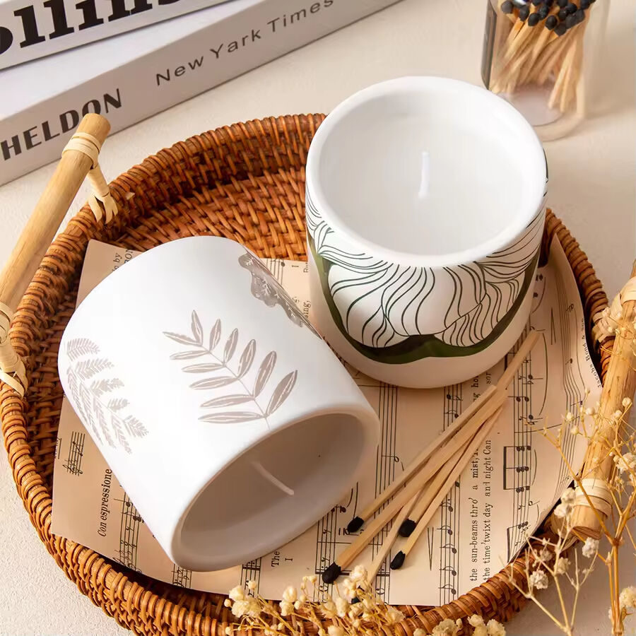 Custom Nordic Custom logo Candle Container Christmas Gift Unique Massage Ceramic Empty Candle Jars