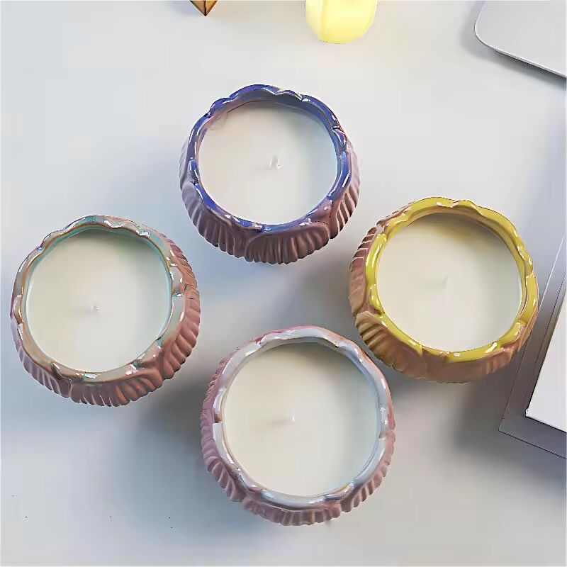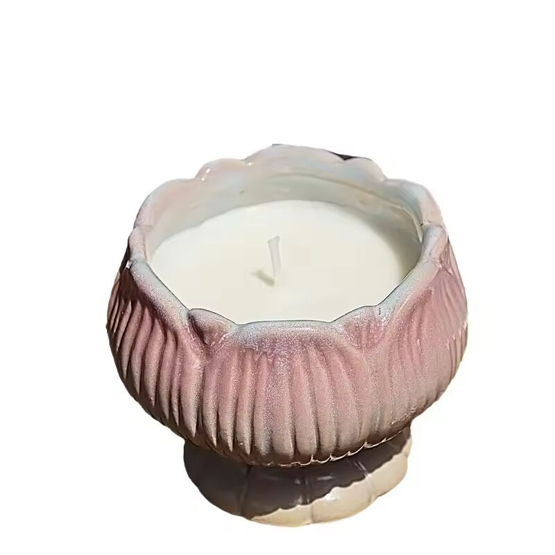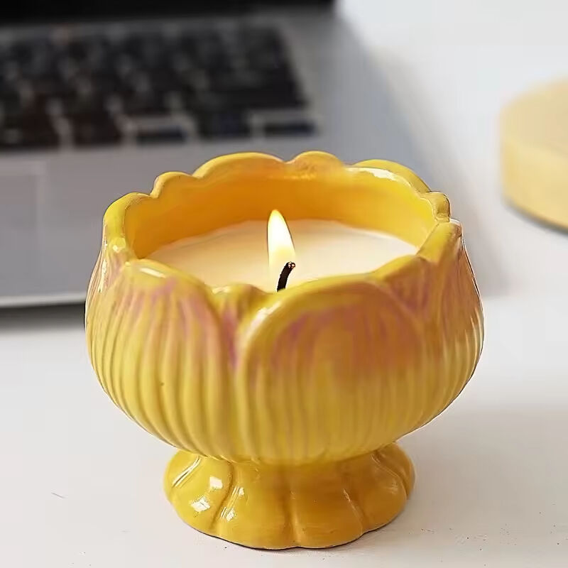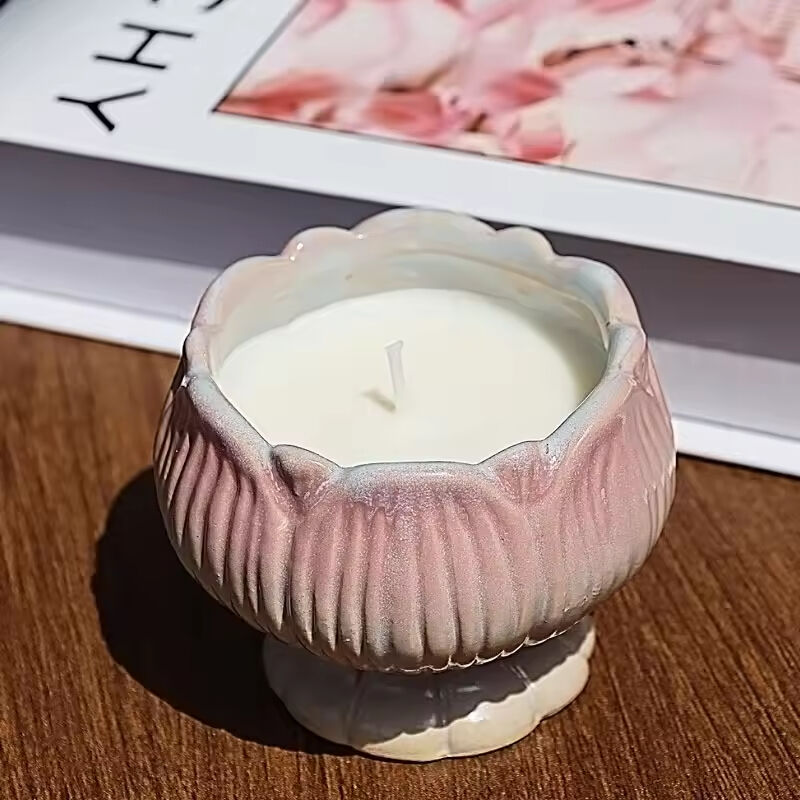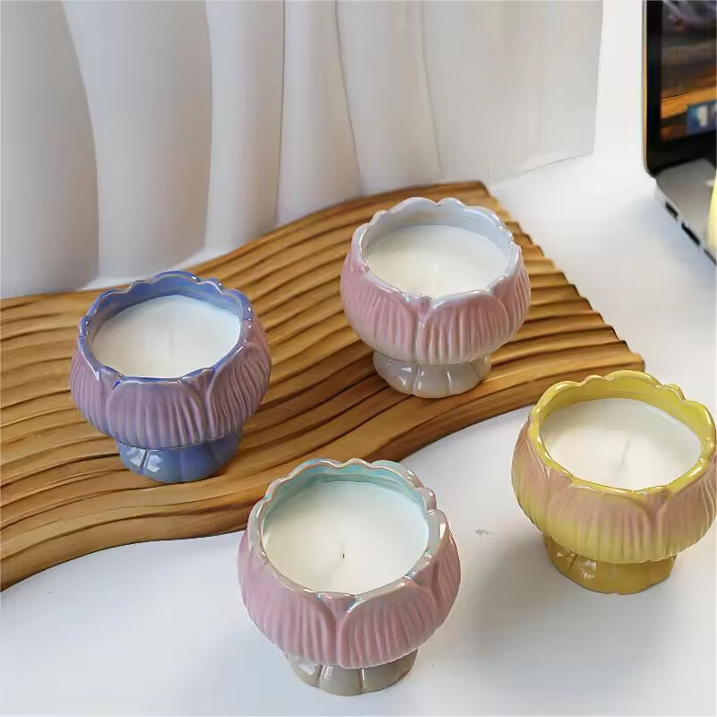 Custom Unique Creative Lotus Shape Ceramic Candle Jar Candle Container Home Decoration Soy Wax Scented Candle