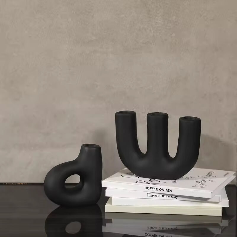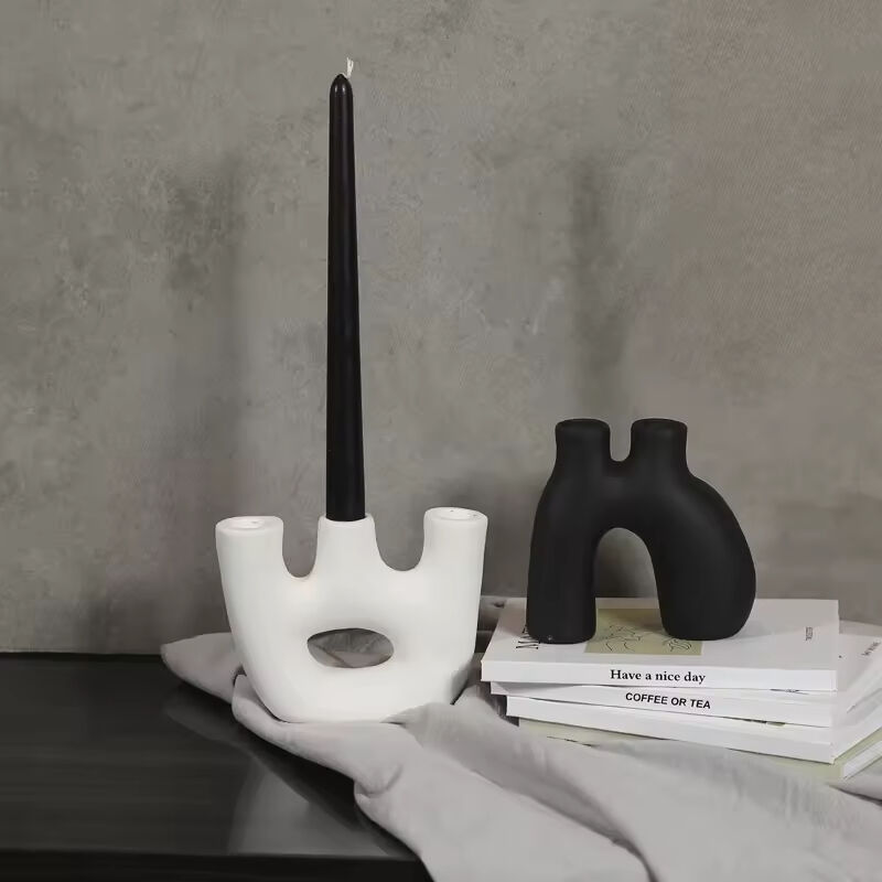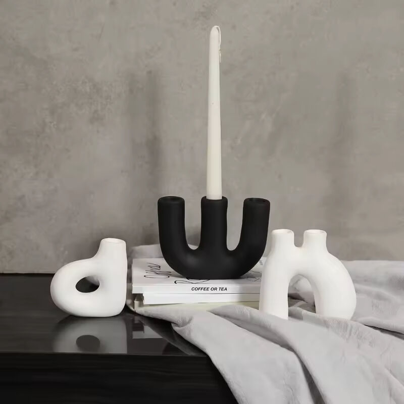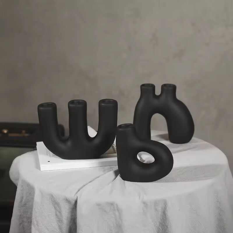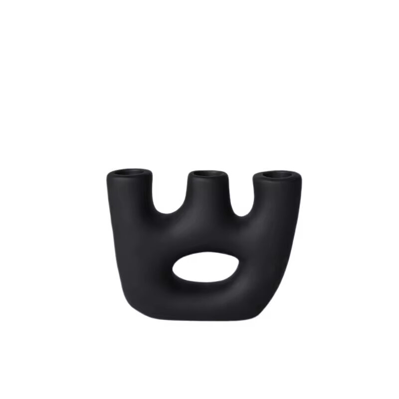 Factory Direct Home Decoration Handmade Grouted Matte Black Ceramic Candle Holders
