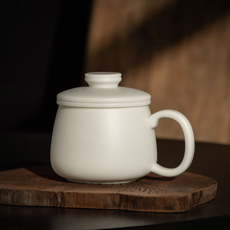 Tazza da Ufficio in Porcellana Bianca con Filtro e Coperchio con Inserto Separatore di Acqua da Tè Tazze da Tè Ceramiche Personalizzate