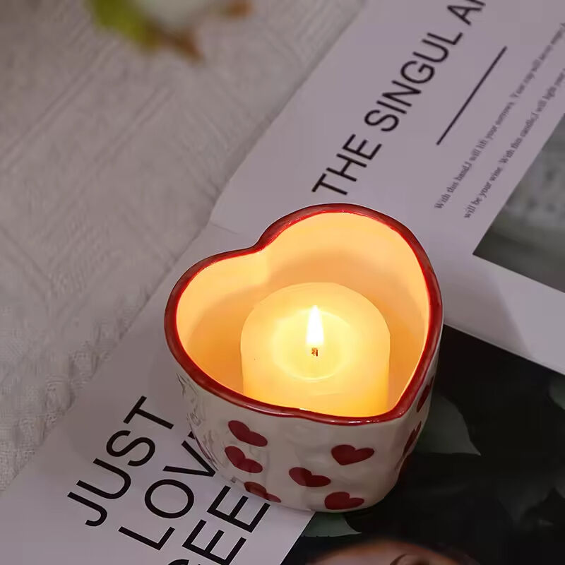 Minimalist Heart Shape Morandi Style Empty Ceramic Candle Cup Custom Logo Luxury Ceramic Candle Jars
