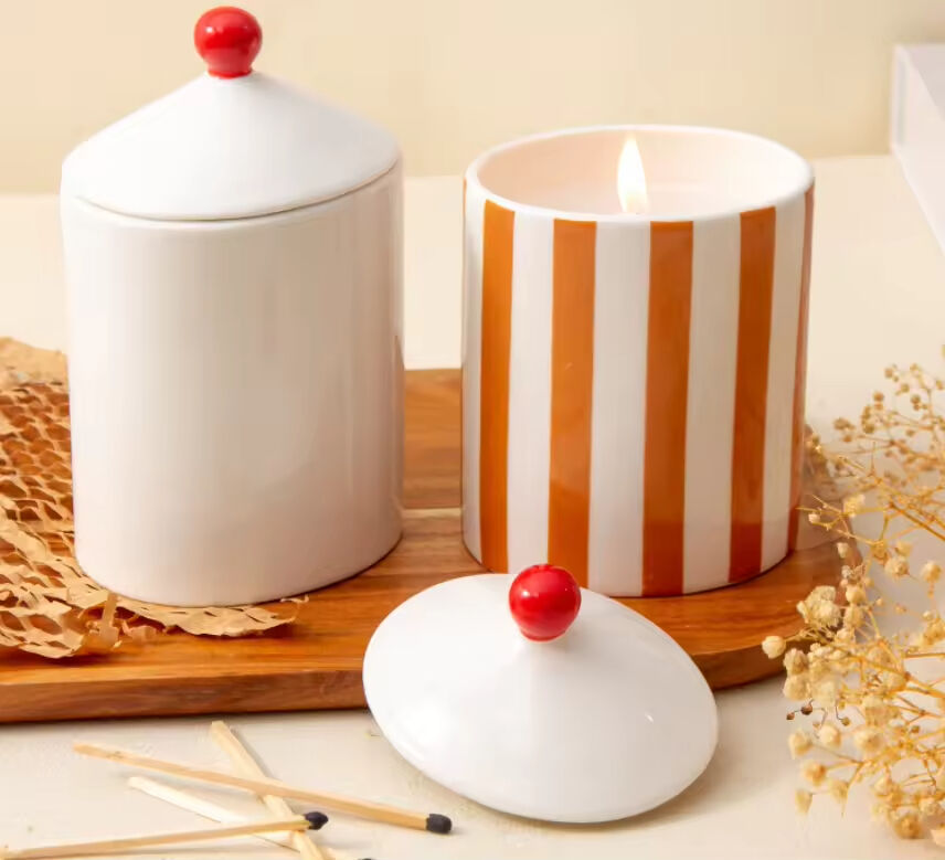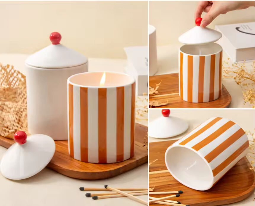 New Design Luxury European Ceramic Candle Jar Empty Wave Design With Lid for Candle Making