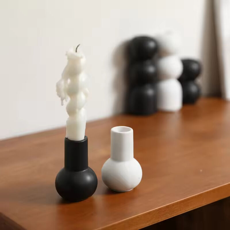 Vintage Furniture Home Tabletop Candle Holder Base Centerpiece Black and White Ceramic Candle Holder